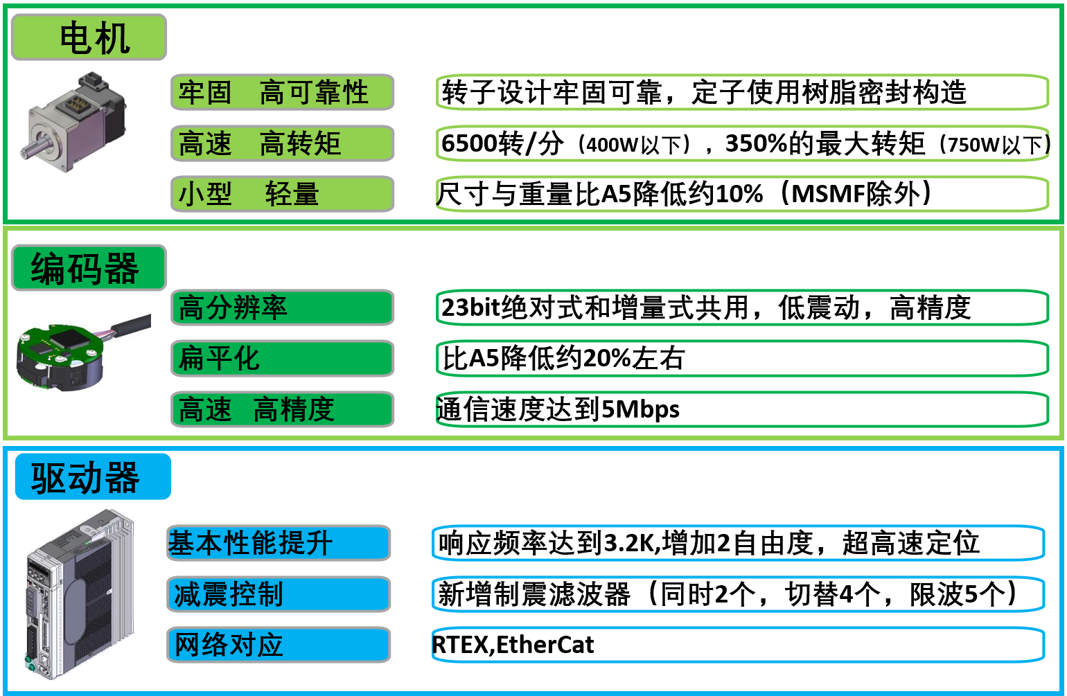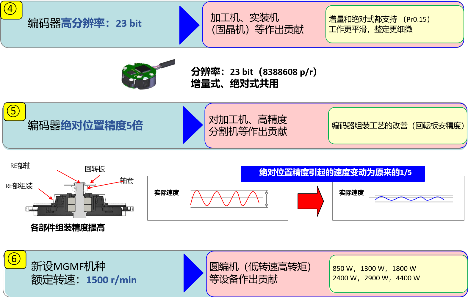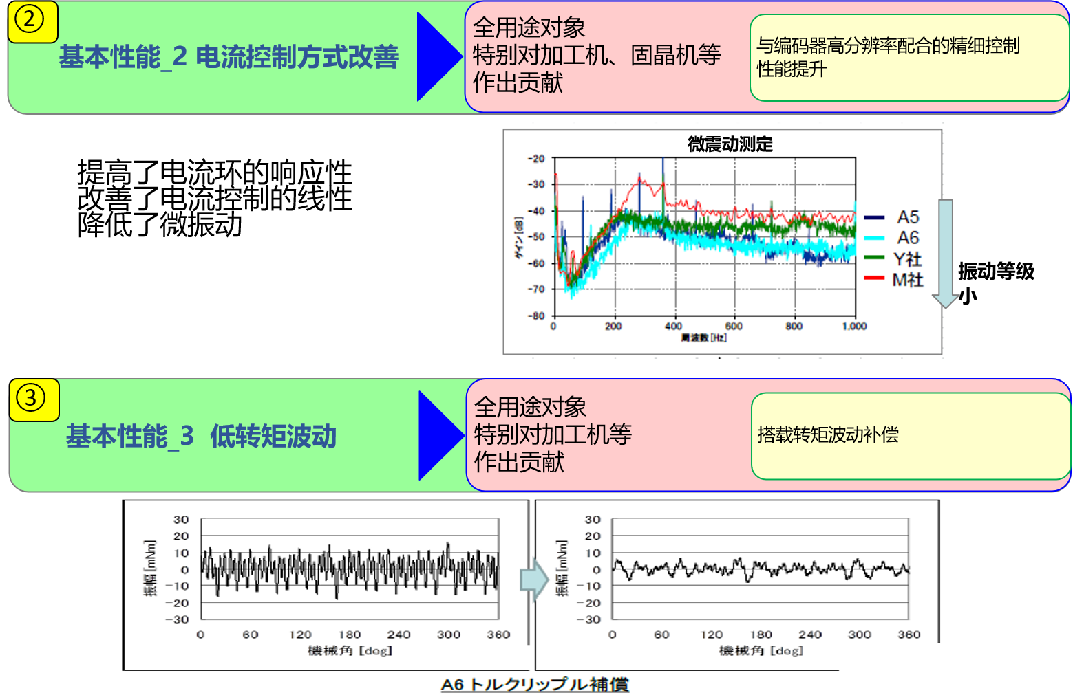 ①高分辨率:23bit絕對(duì)式和增量式共用,低震動(dòng),高精度
